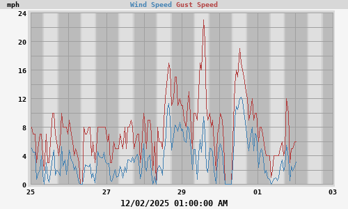 This week's min: 0 mph at 02:24:59 AM (Sunday)